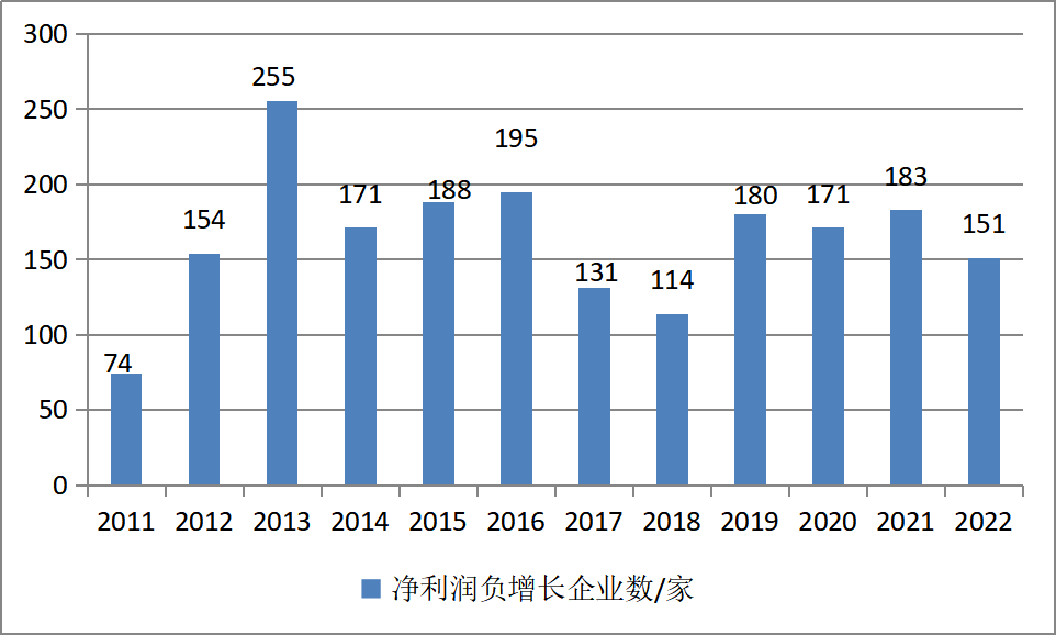 部分行业持续受到冲击,在经济复苏中依然承受较大发展压力,行业营收增长乏力。住宅地产业受冲击最大,入围企业净减少8家;电力电器设备制造业也遭受较大影响,全行业净减少5家。部分零售领域也受到较大影响,汽车摩托车零售业、家电及电子产品零售业均净减少3家。药品制造业也在复苏中调整变化,净减少2家。2022中国企业500强中,首次有教育服务业企业上榜。